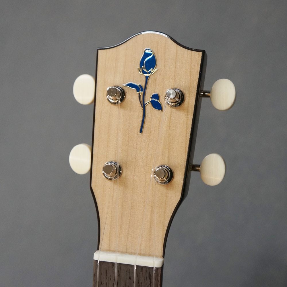 ヘッドストックのインレイである青いバラは「新しいことへの挑戦」、咲き始めの蕾は「夢を描き追い続けること」を意味し、フジゲンの技術力とスタッフの感性を融合させた楽器作りに励むべく発足しました。