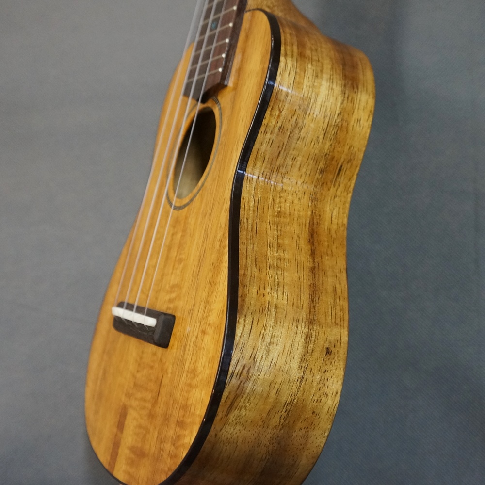 こちらはハワイアンコア材をボディに使用したオール単板のソプラノウクレレです。