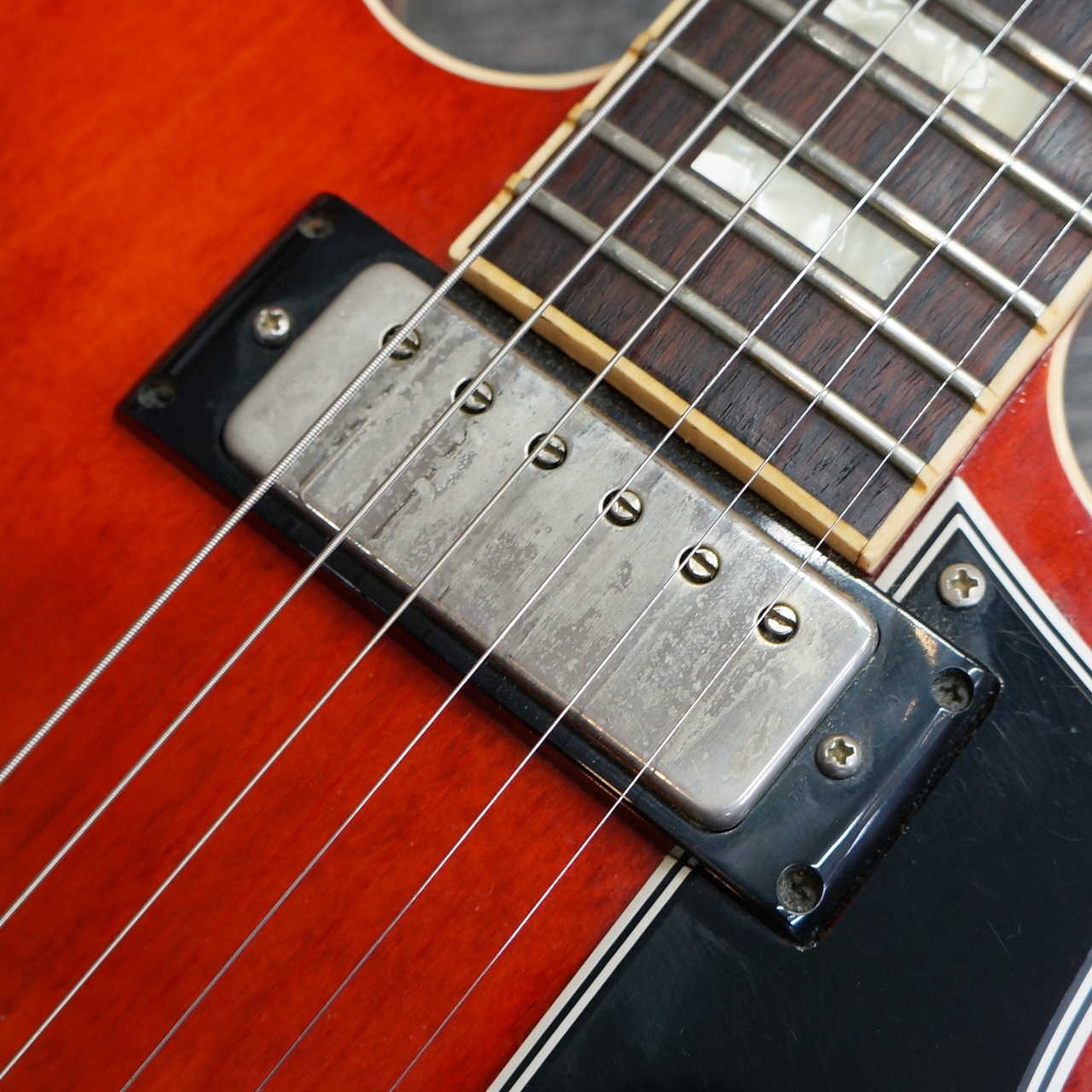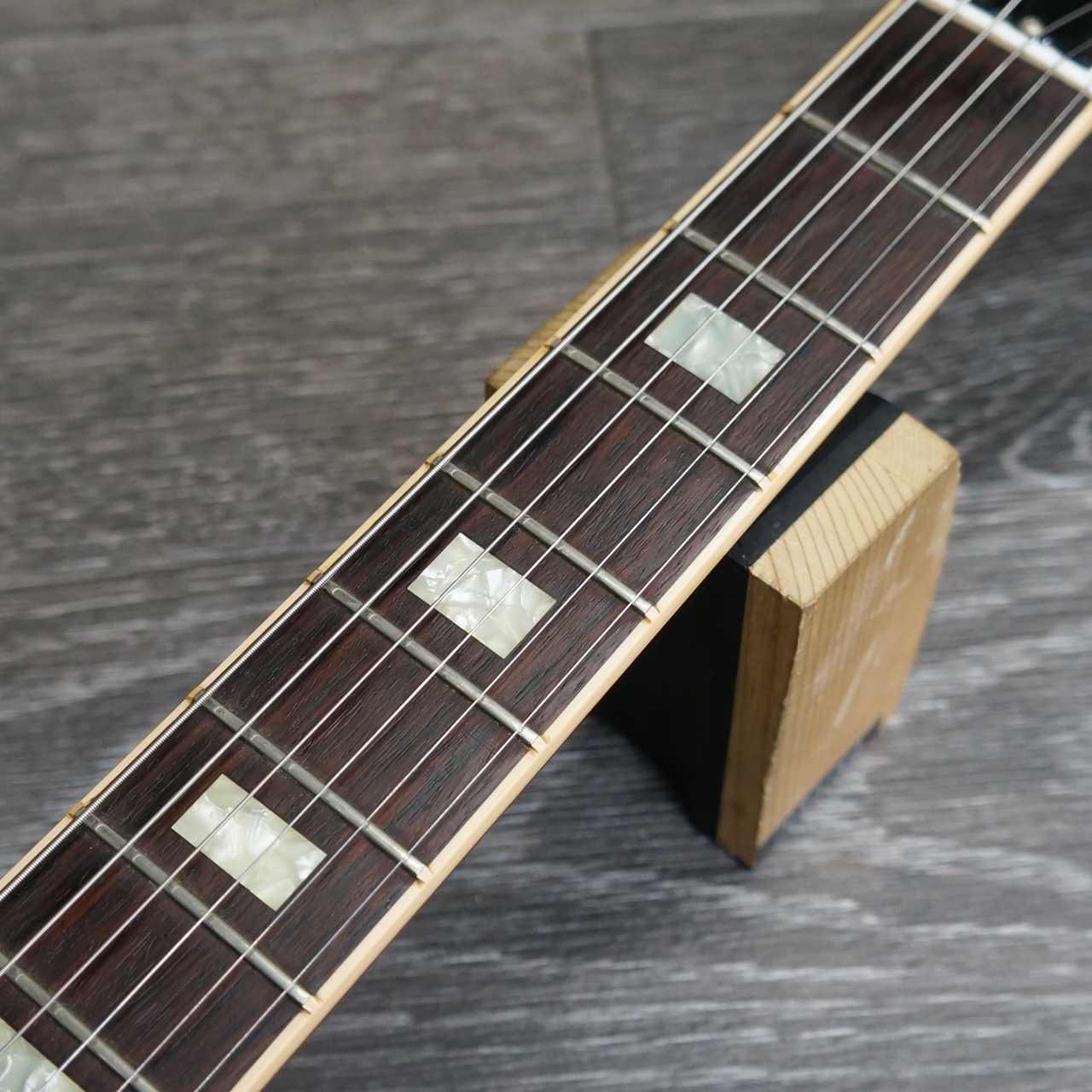 トラスロッドは固めな状態で、フレットはローポジションにやや減りはございますが、現在のところ演奏上の問題は感じられません。