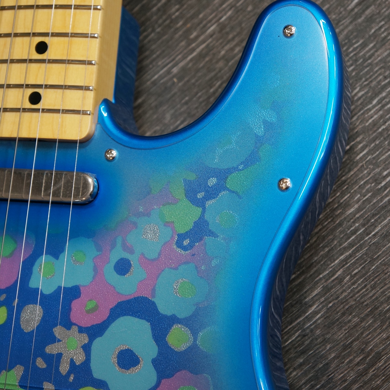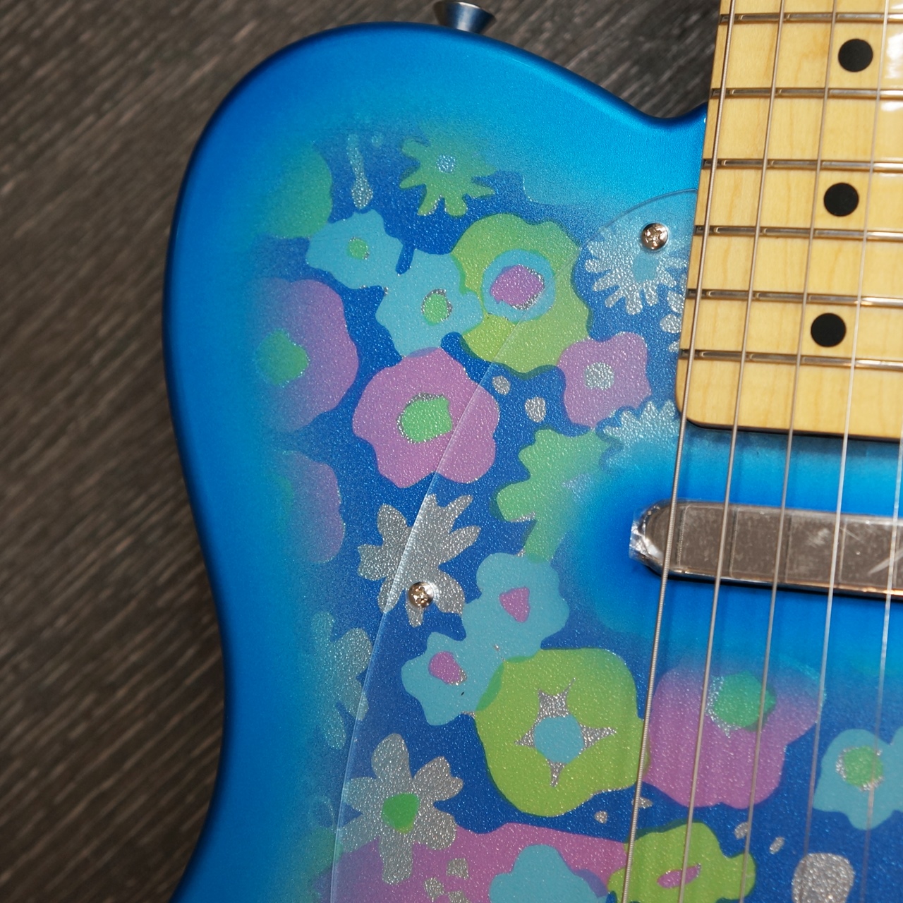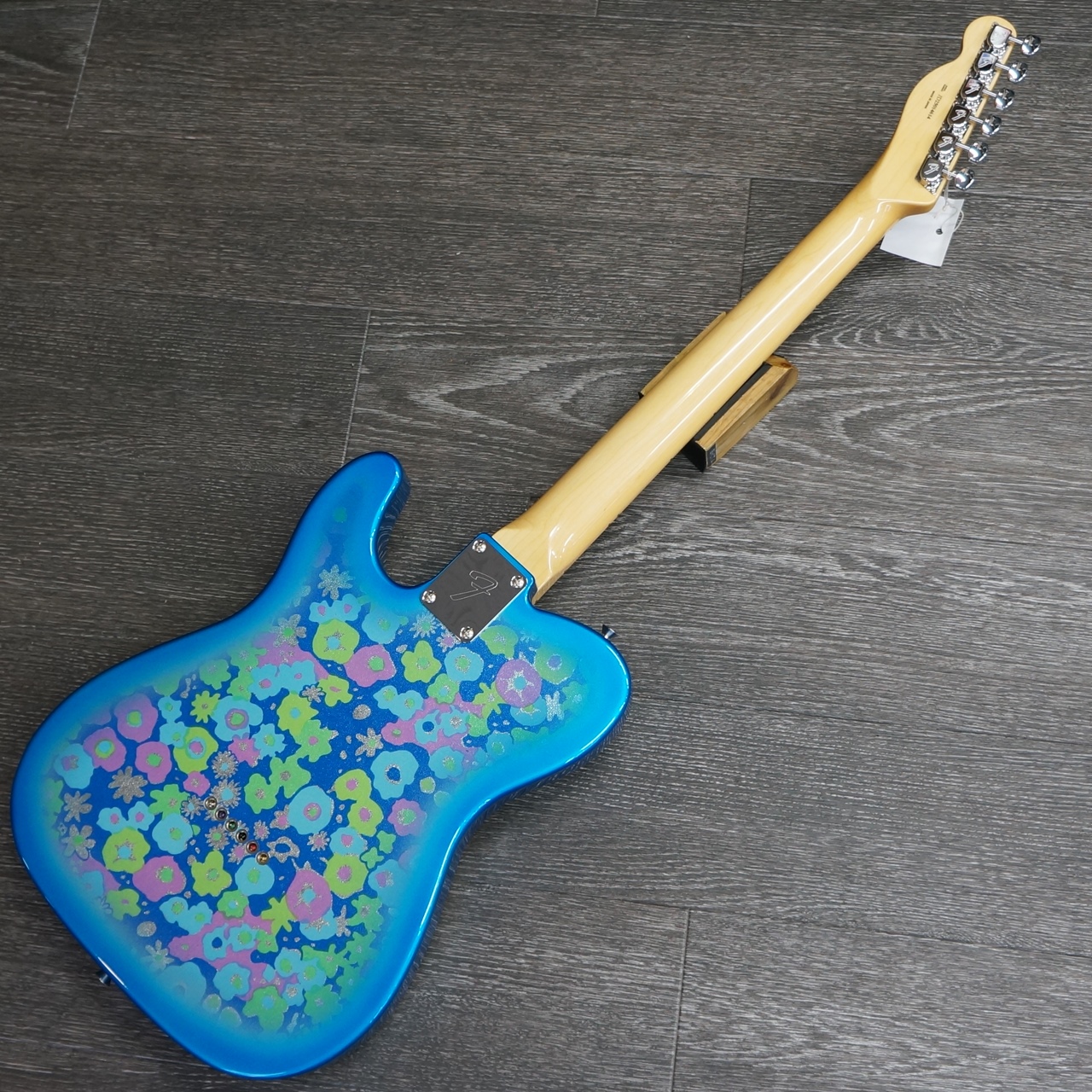 Made in Japan Limited Telecaster® Blue Flowerは、Blue Flowerのシートを貼り付けた、グロスフィニッシュのアルダーボディを採用。