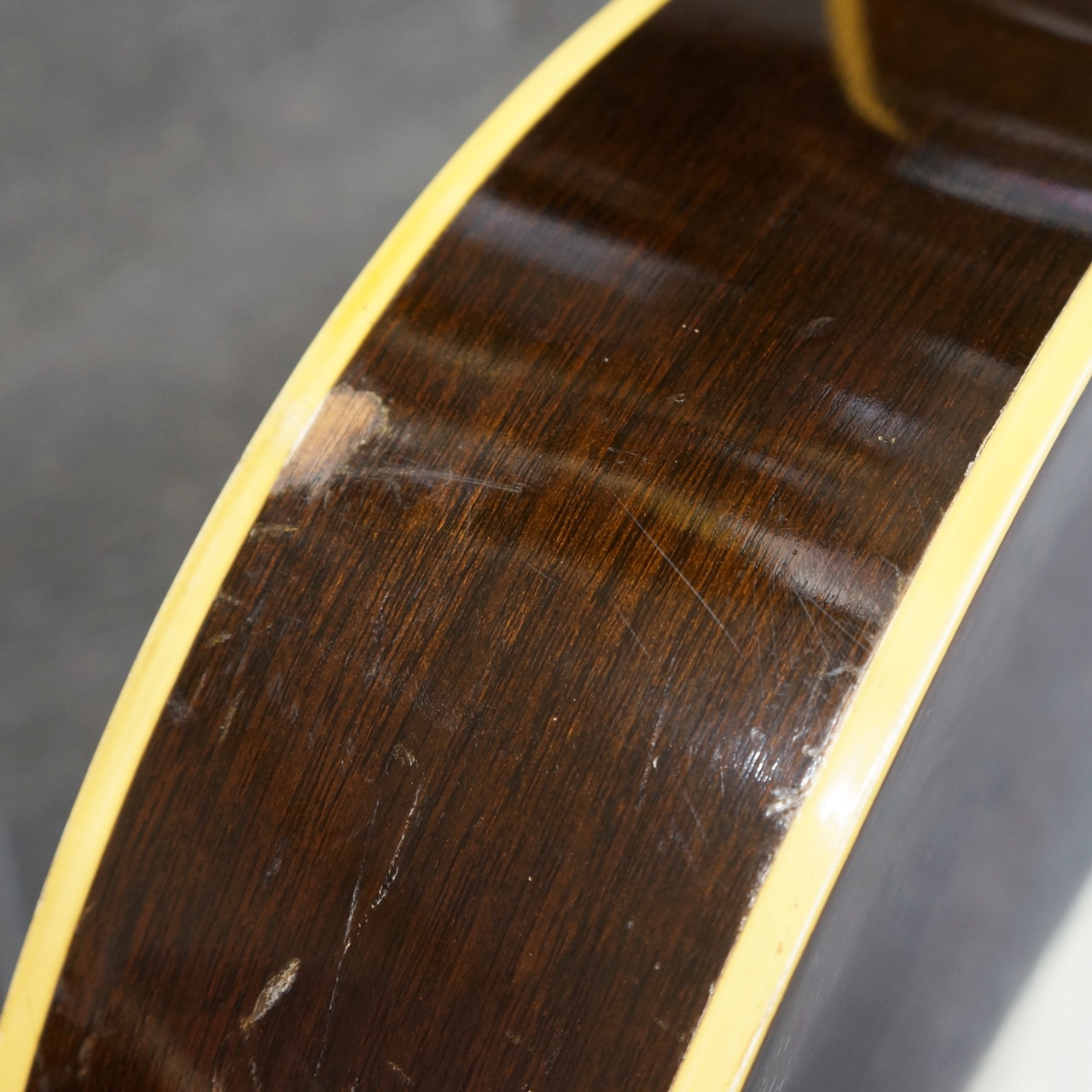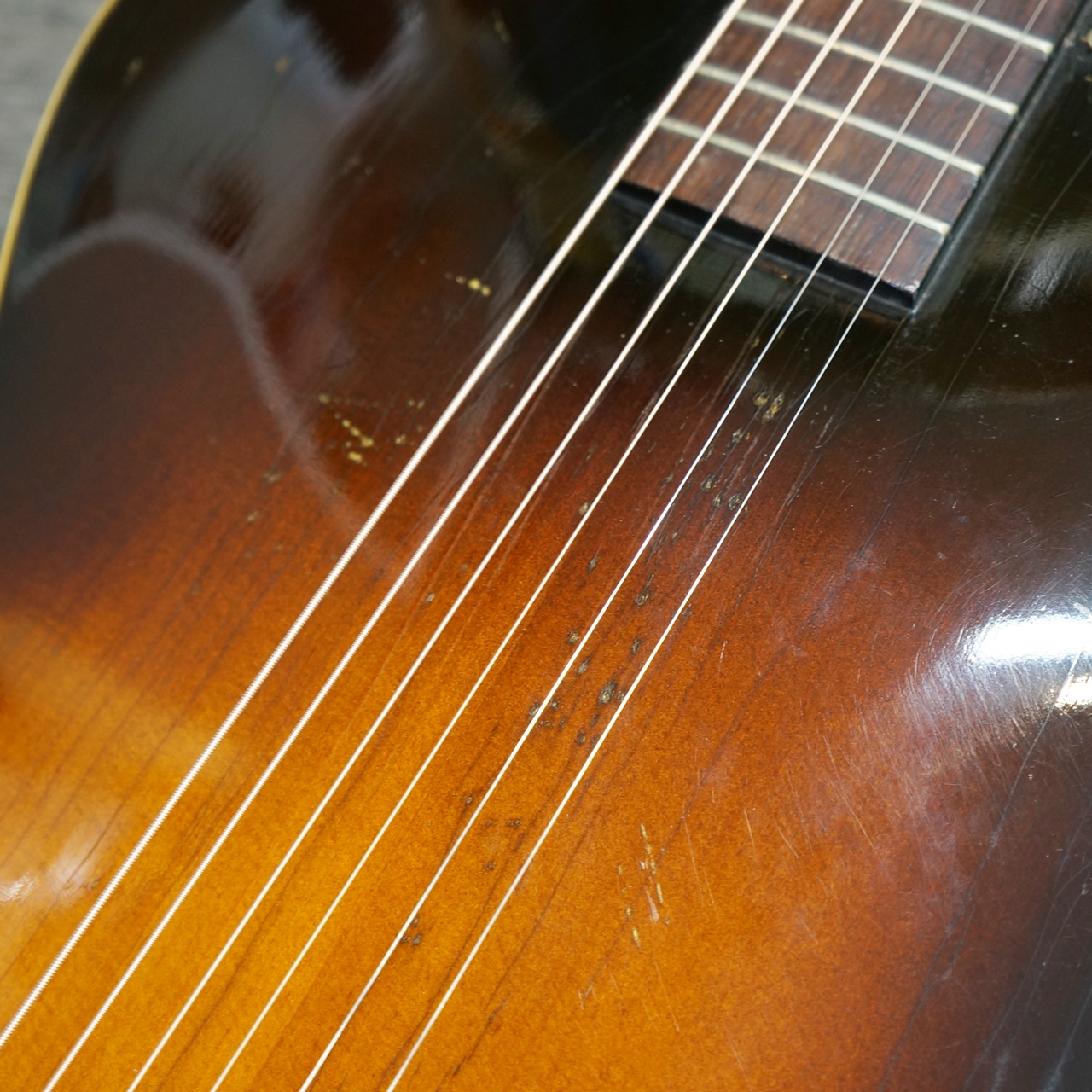 ボディトップにスプルース、サイドはマホガニー、バックはメイプルを使用。1950年代に製作された個体と思われます。