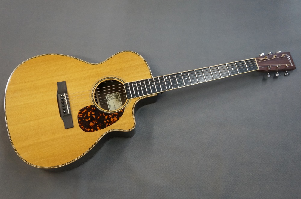 トップに単板シトカスプルース、サイドとバックに単板インディアンローズウッドを使用したカッタウェイモデル。