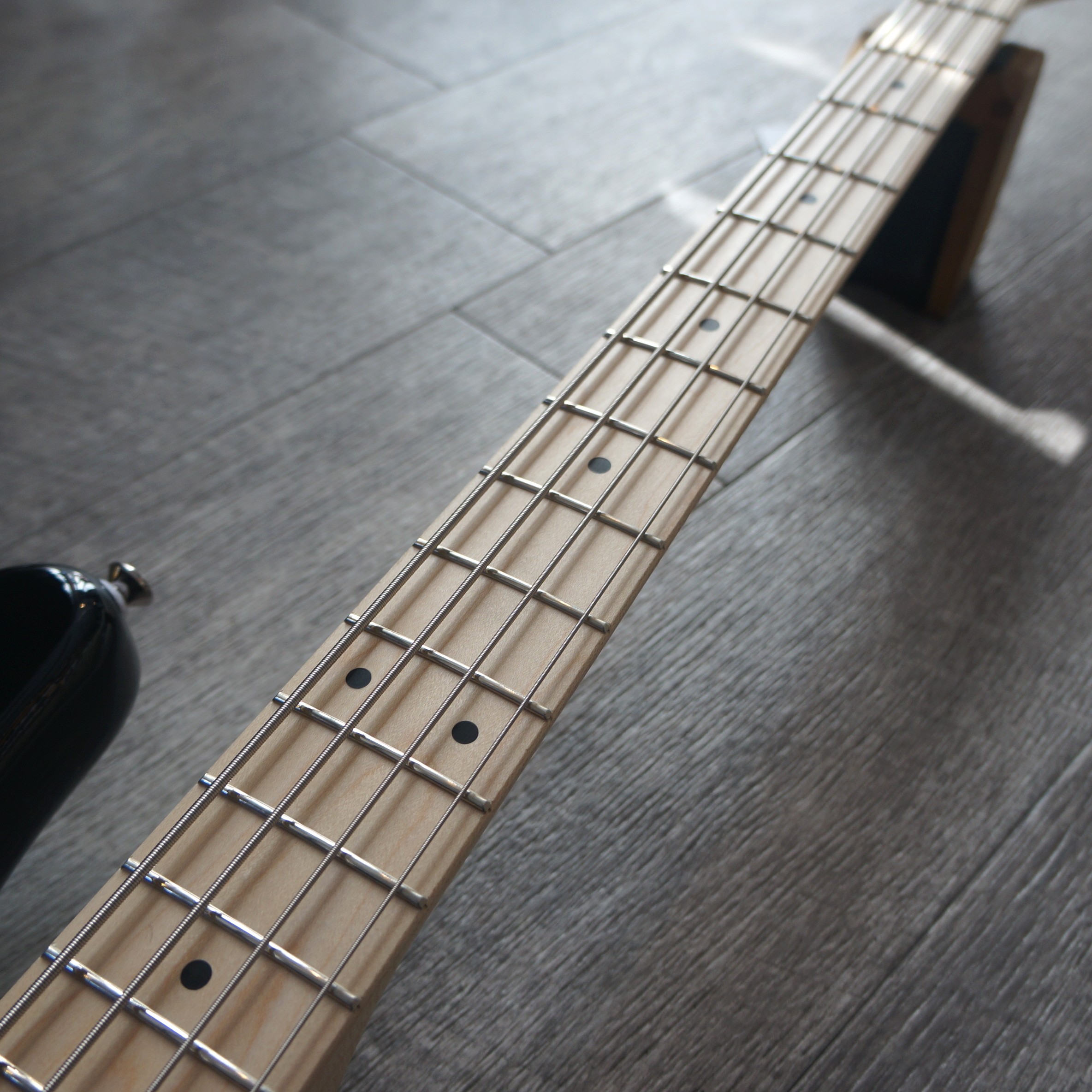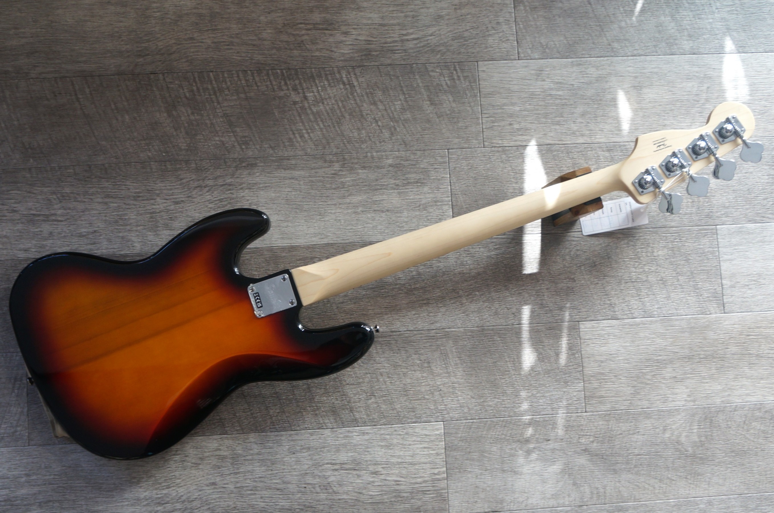 ボディにポプラ材を使用。サンバーストカラーにメイプル指板を組み合わせたジャズベースです。