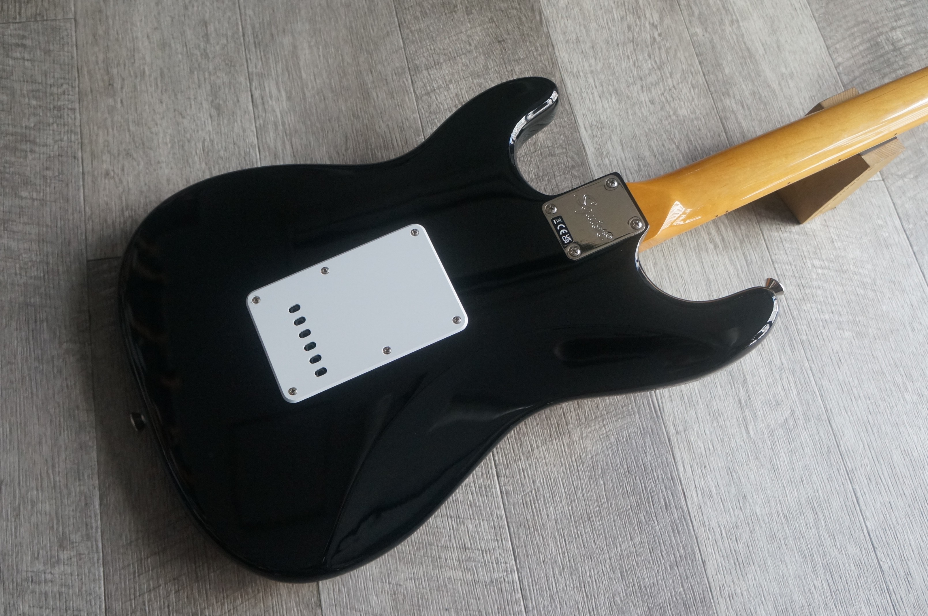 定番カラーであるブラックにメイプル指板を組み合わせたストラトキャスターです。