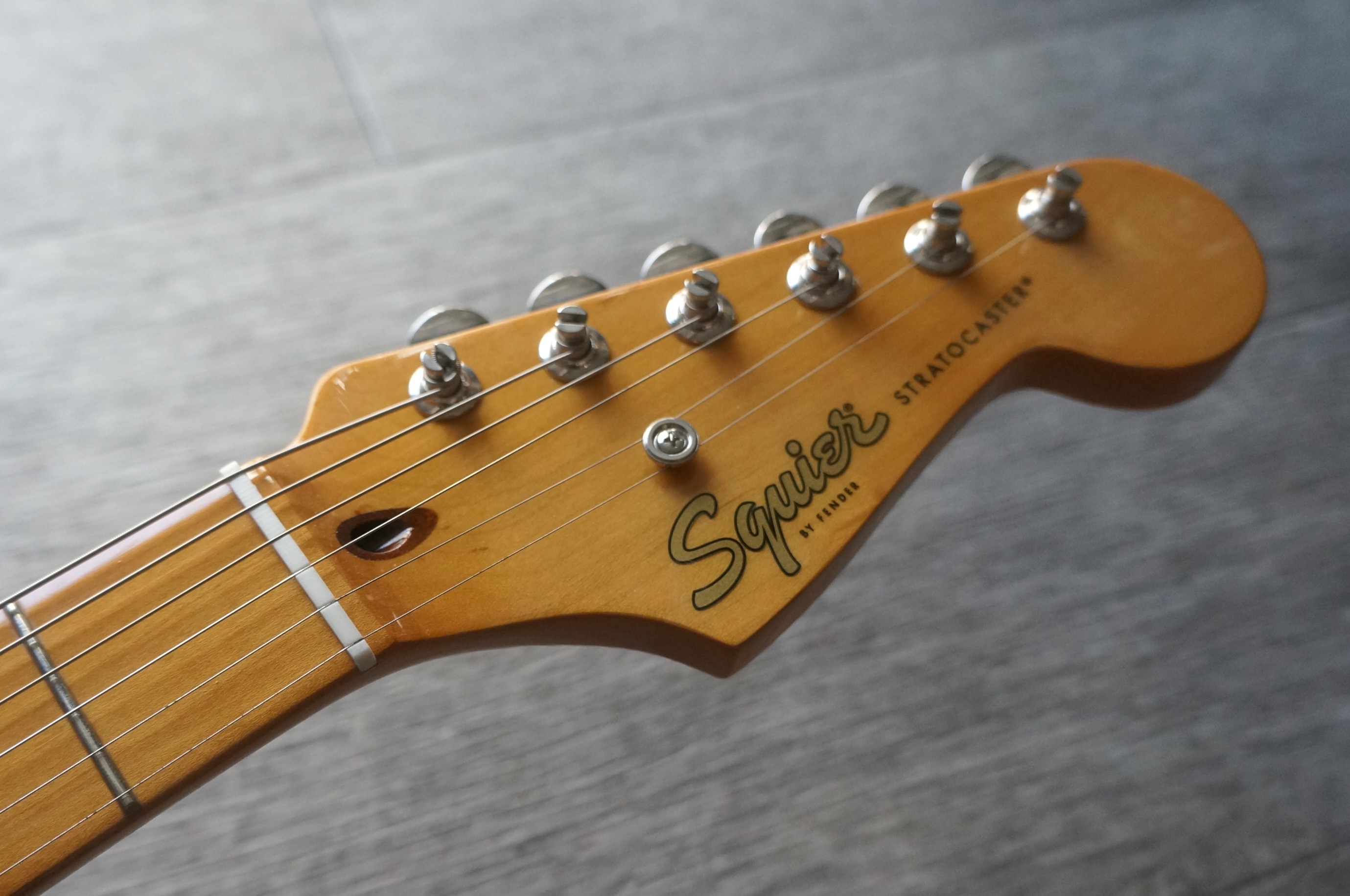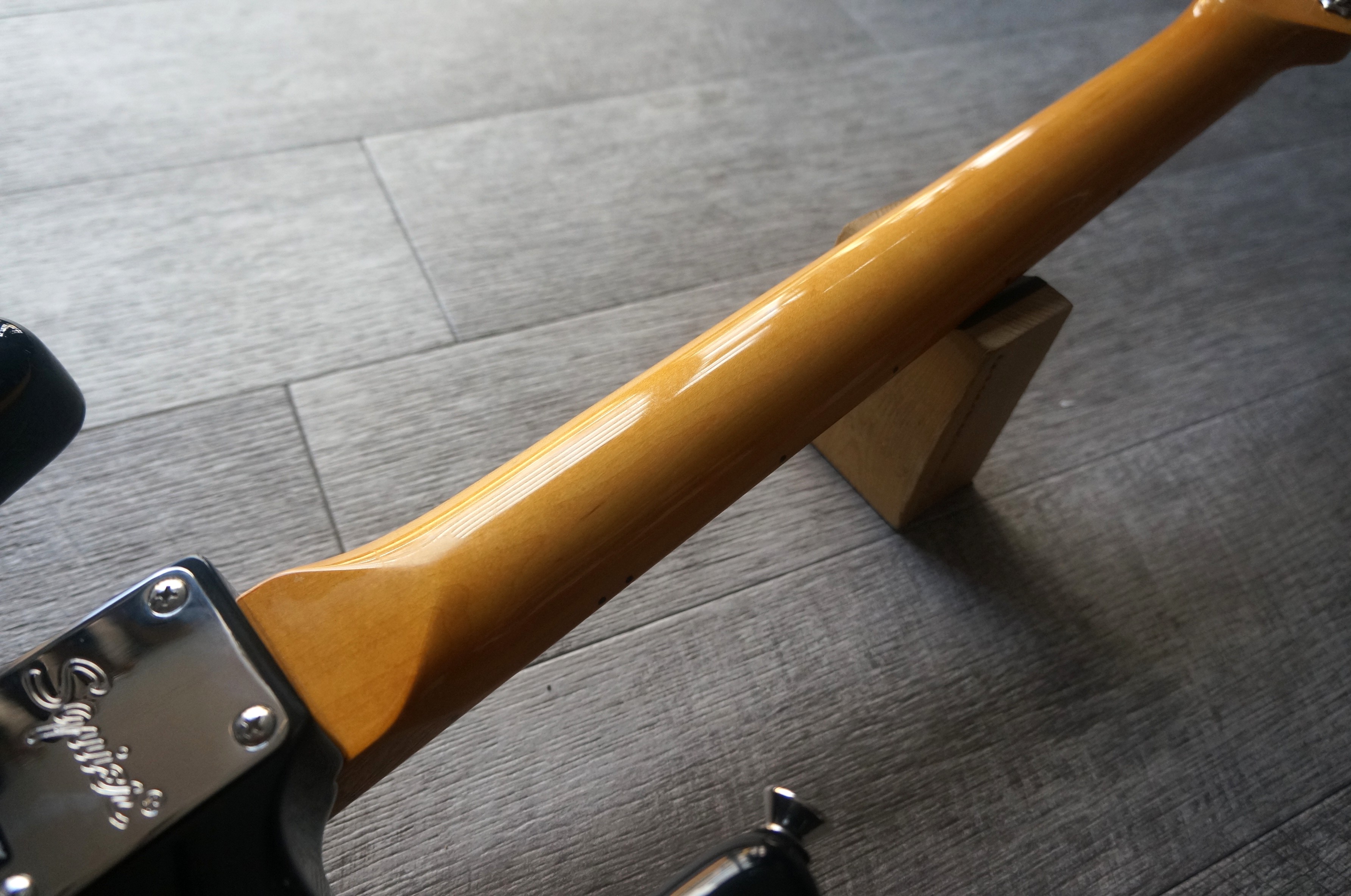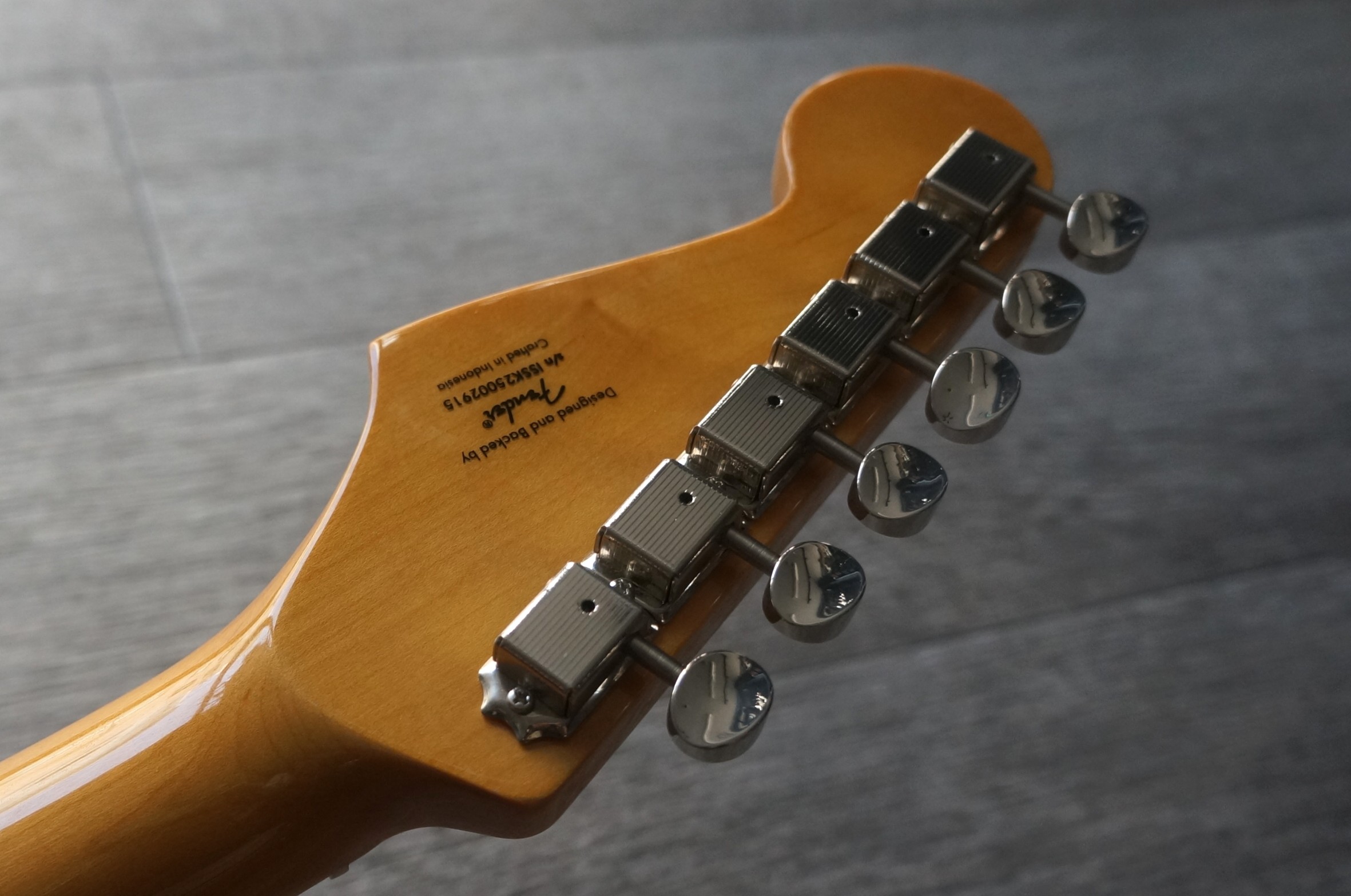 ヘッドやネックは50年代のStratocasterにインスパイアされた仕上げとなっており、本格的なオールドスクールの風格をまとっています。