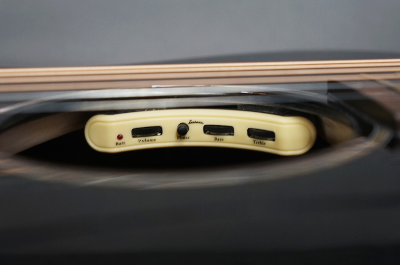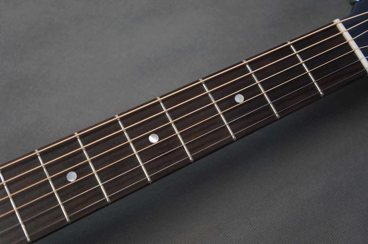 フレットはJescar FW43080、ナットとサドルは牛骨を使用したエレアコモデルです。
