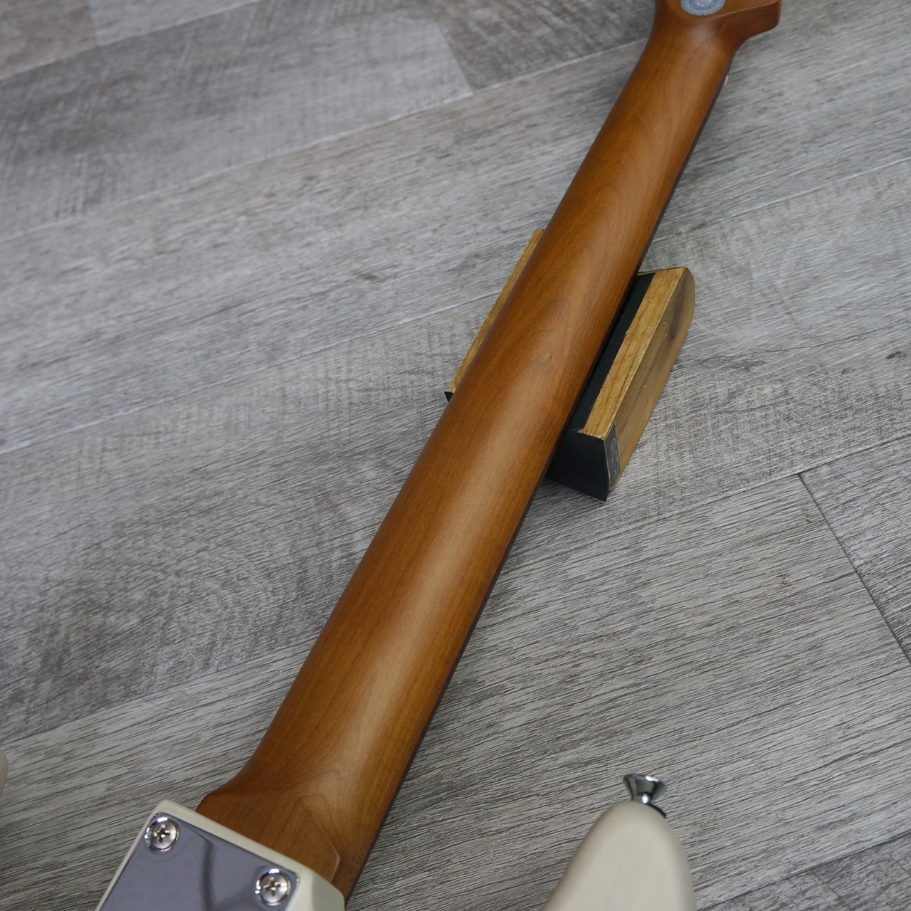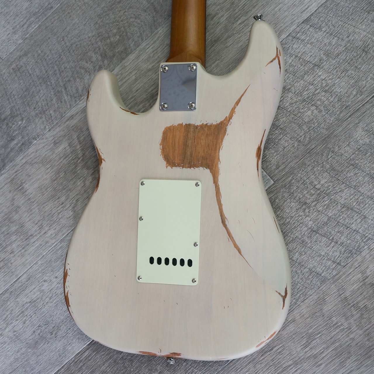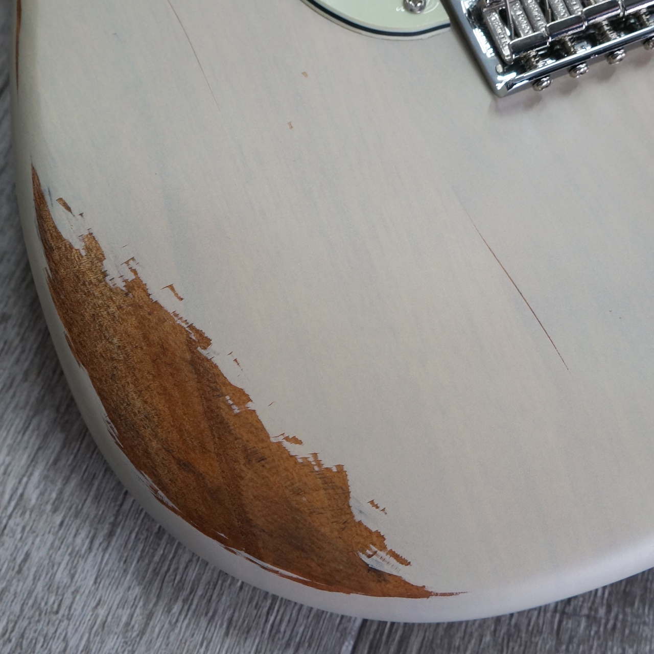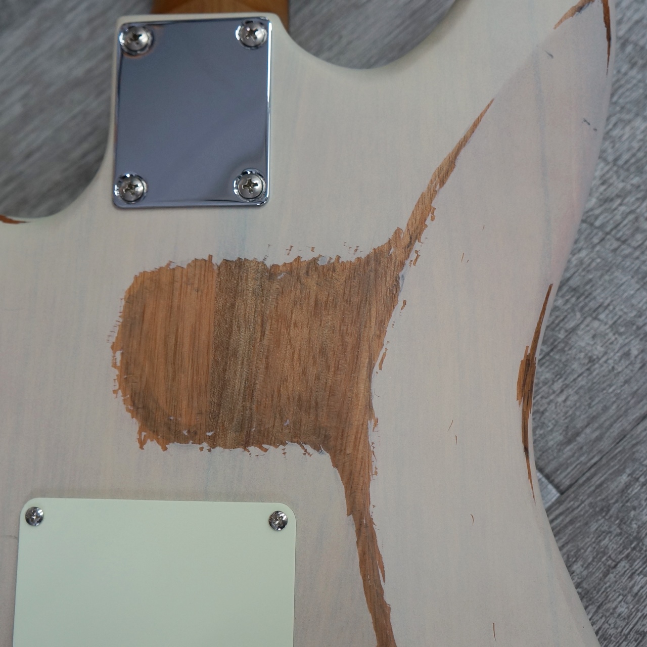 一本一本手作業で行われるボディのエイジド加工により、自然な経年変化を再現しています。一般的なグロスフィニッシュに代わりマットな風合いに仕上げることで、長年引き込んだような風格をその手に感じさせます。