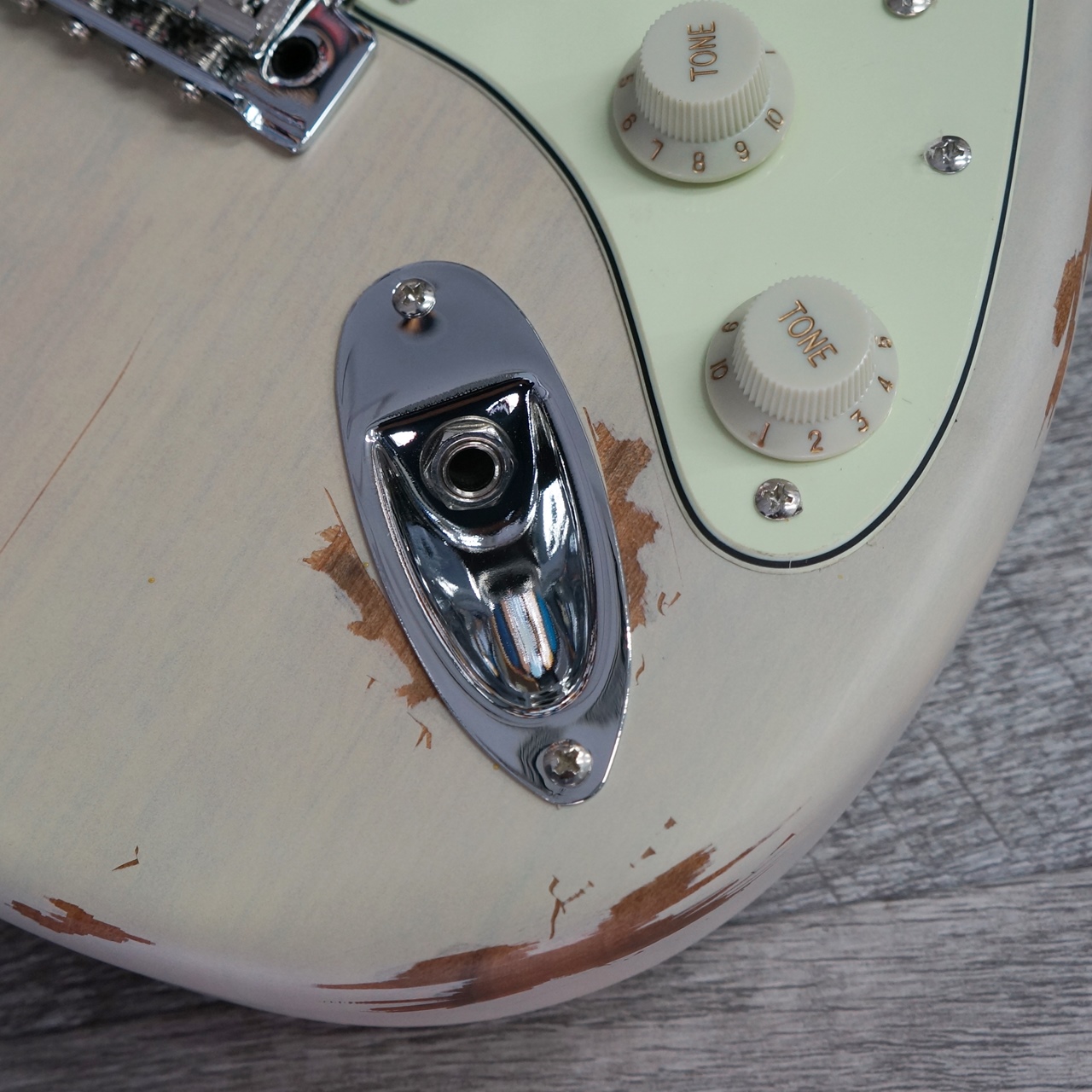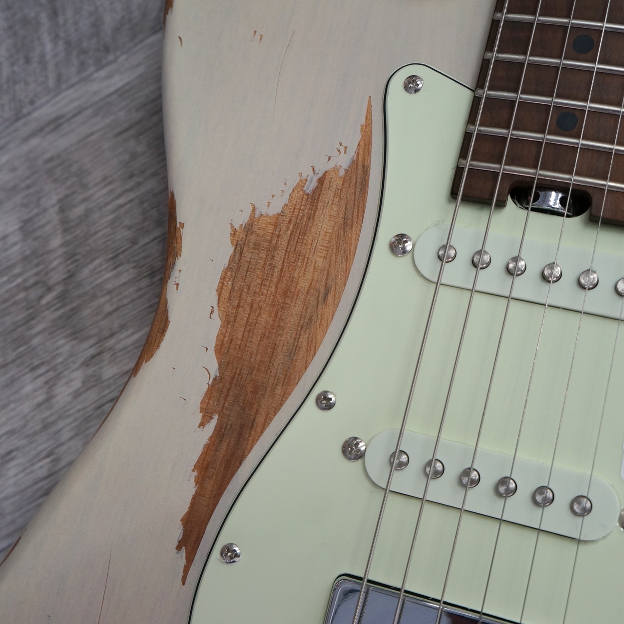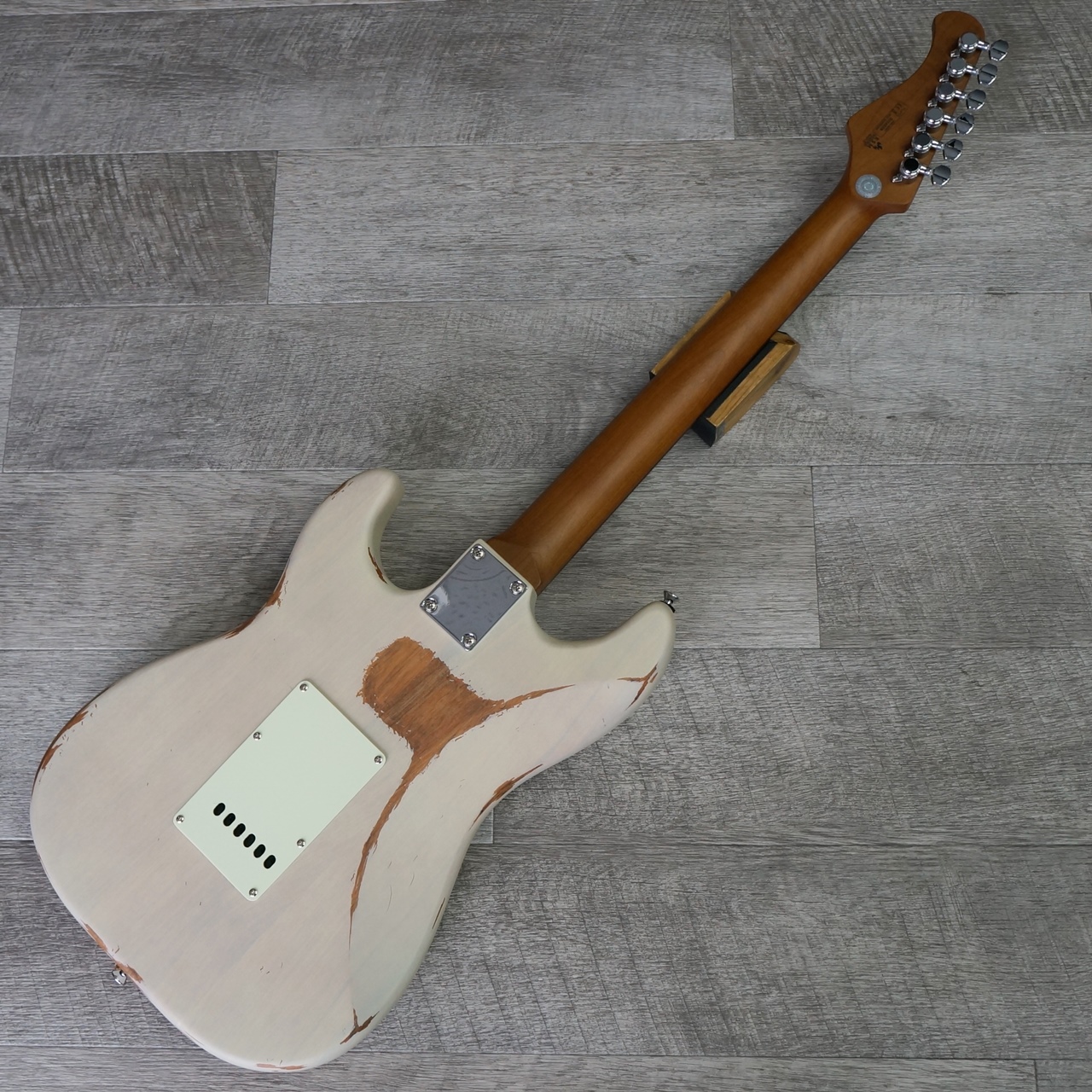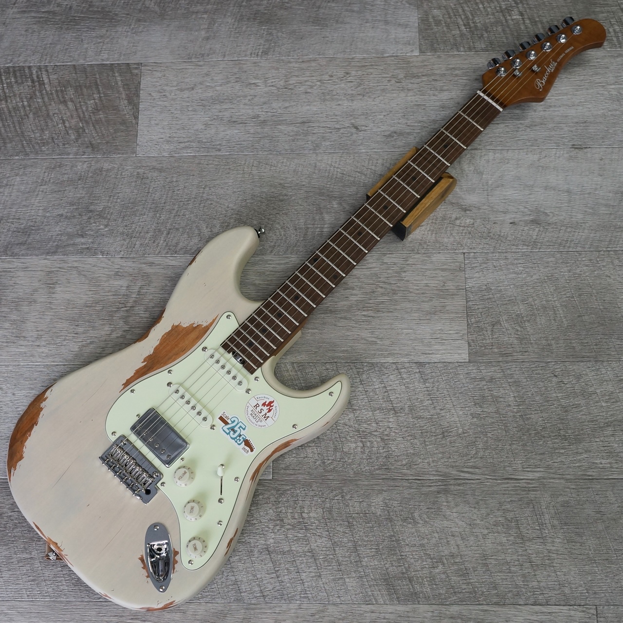 一本一本手作業で行われるボディのエイジド加工により、自然な経年変化を再現しています。一般的なグロスフィニッシュに代わりマットな風合いに仕上げることで、長年引き込んだような風格をその手に感じさせます。