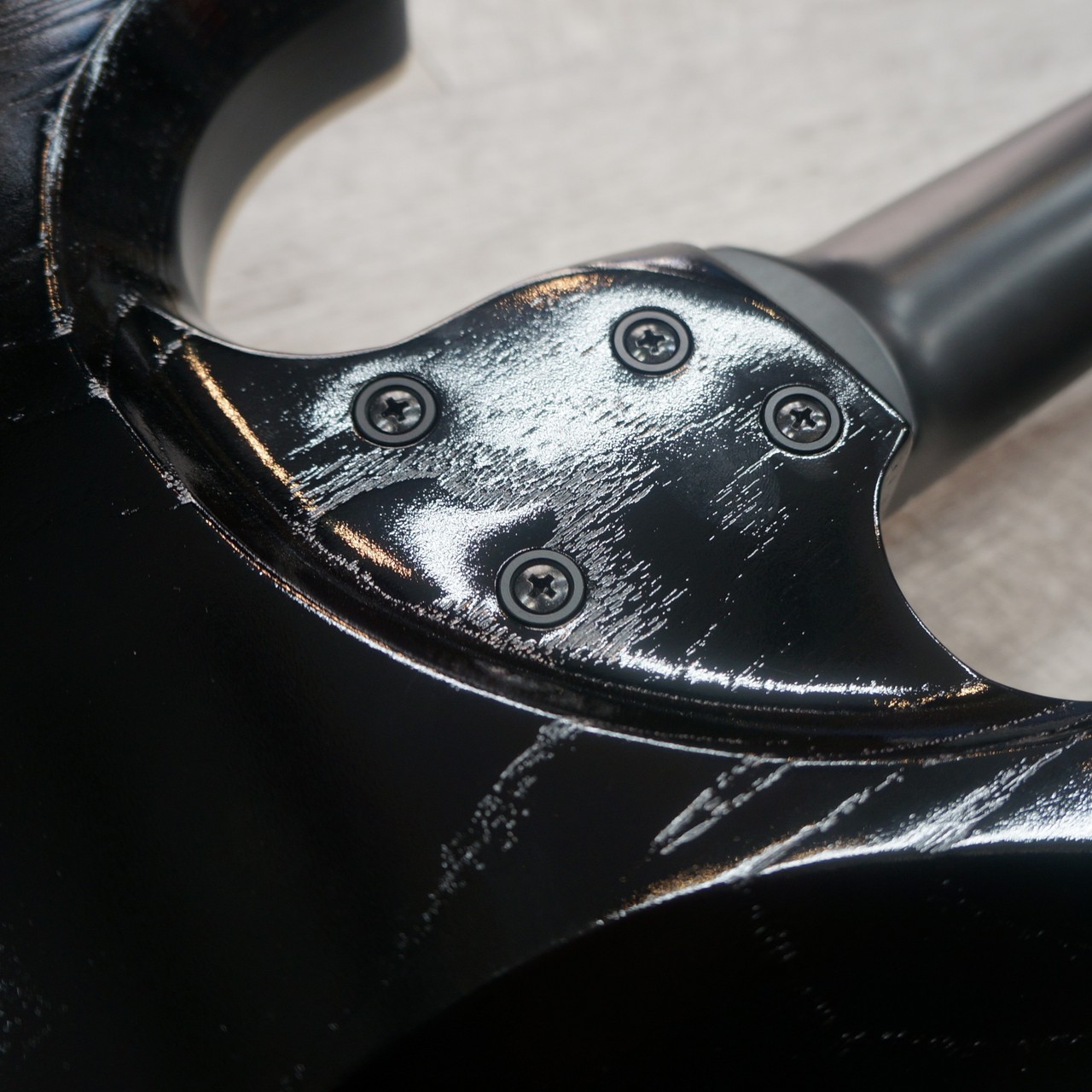 ネックグリップはサテン仕上げで滑りもよく、ポジションチェンジ時にストレスはありません。