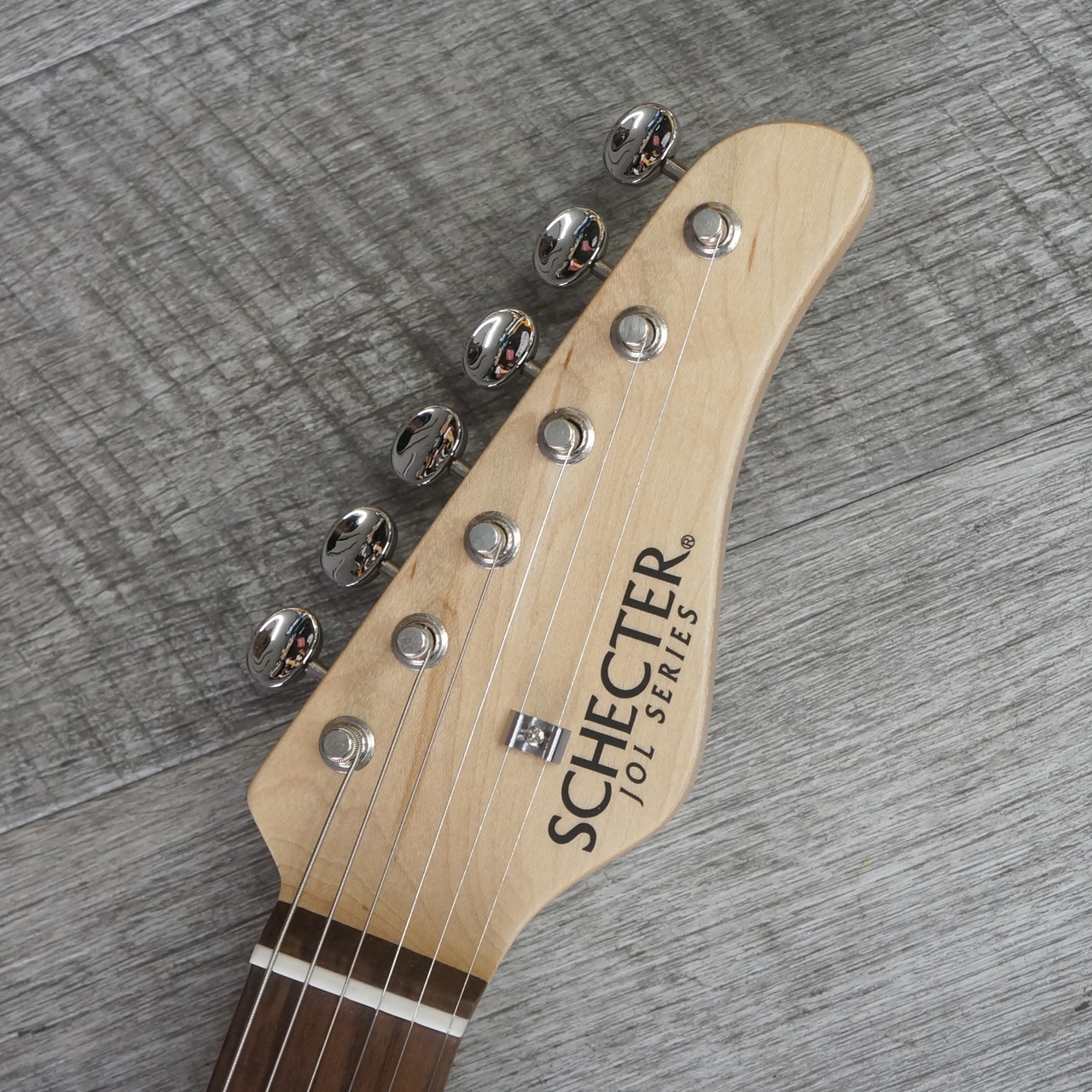 アルダーボディ、メイプルネック、ローズウッド指板、22フレット仕様といった、現代的なスペックを持ったシェクターらしいモデルです。