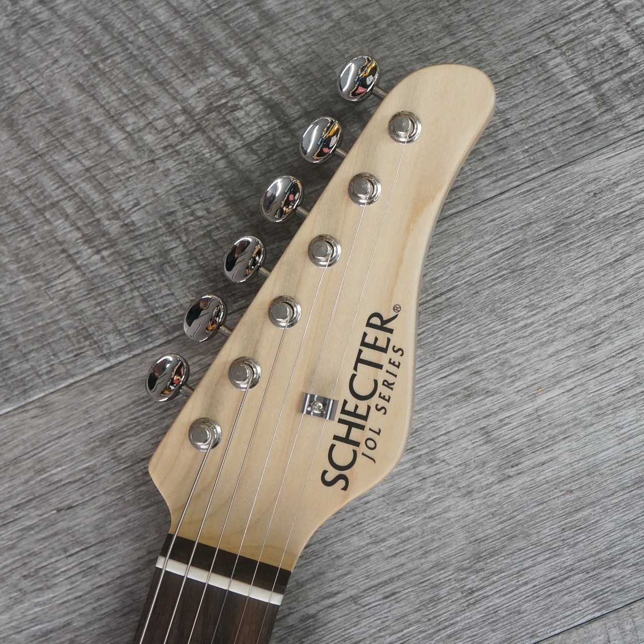 アルダーボディ、メイプルネック、ローズウッド指板、22フレット仕様、フロントにソープバータイプのピックアップ(P-90)を搭載した、現代的なスペックを持ったシェクターらしいモデルです。