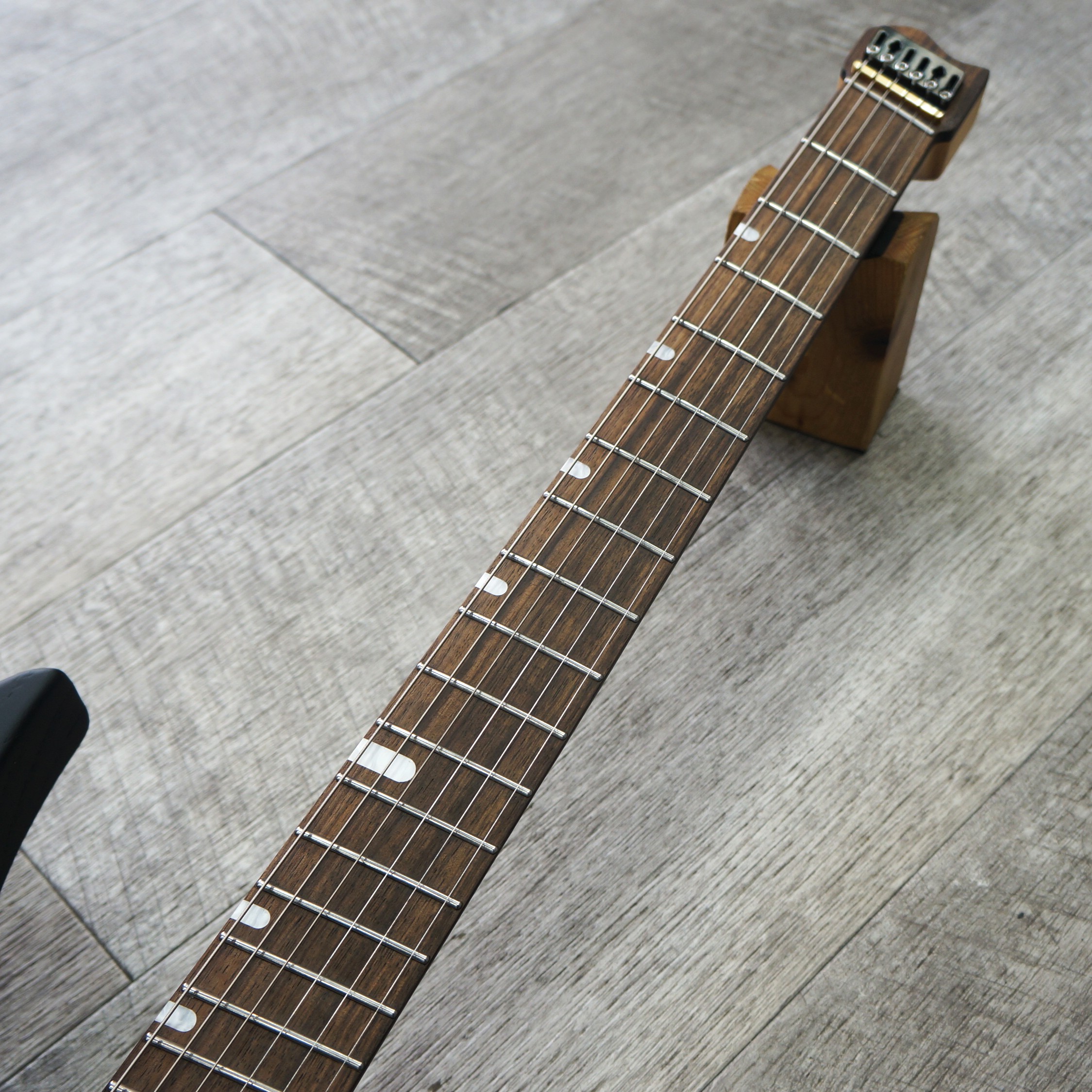 ファンドフレットは、弦のテンションを均一に整え、ピッチの安定性も向上させます。特にダウンチューニングを使用する際に恩恵がある仕様といえます。