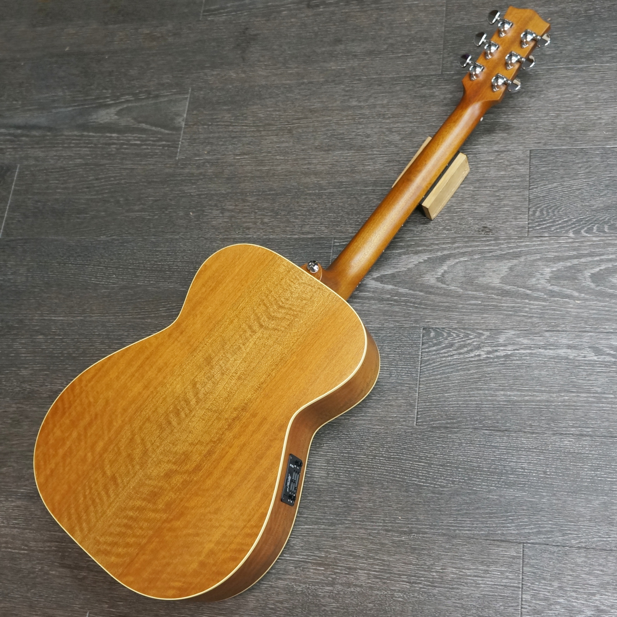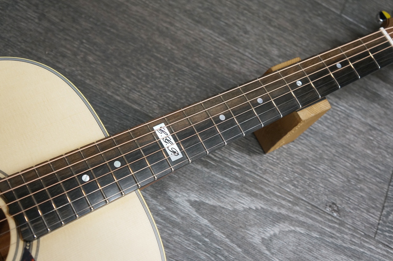 ボディ幅は14-1/4インチと000と00サイズの中間で、小柄ではありますが4-3/4インチというボディ厚が豊かな音量を生み出し、極限まで高められたセットアップ、ローポジションからハイポジションまで、指板に吸い付く様な弾き心地がテクニカルなプレイをサポートします。