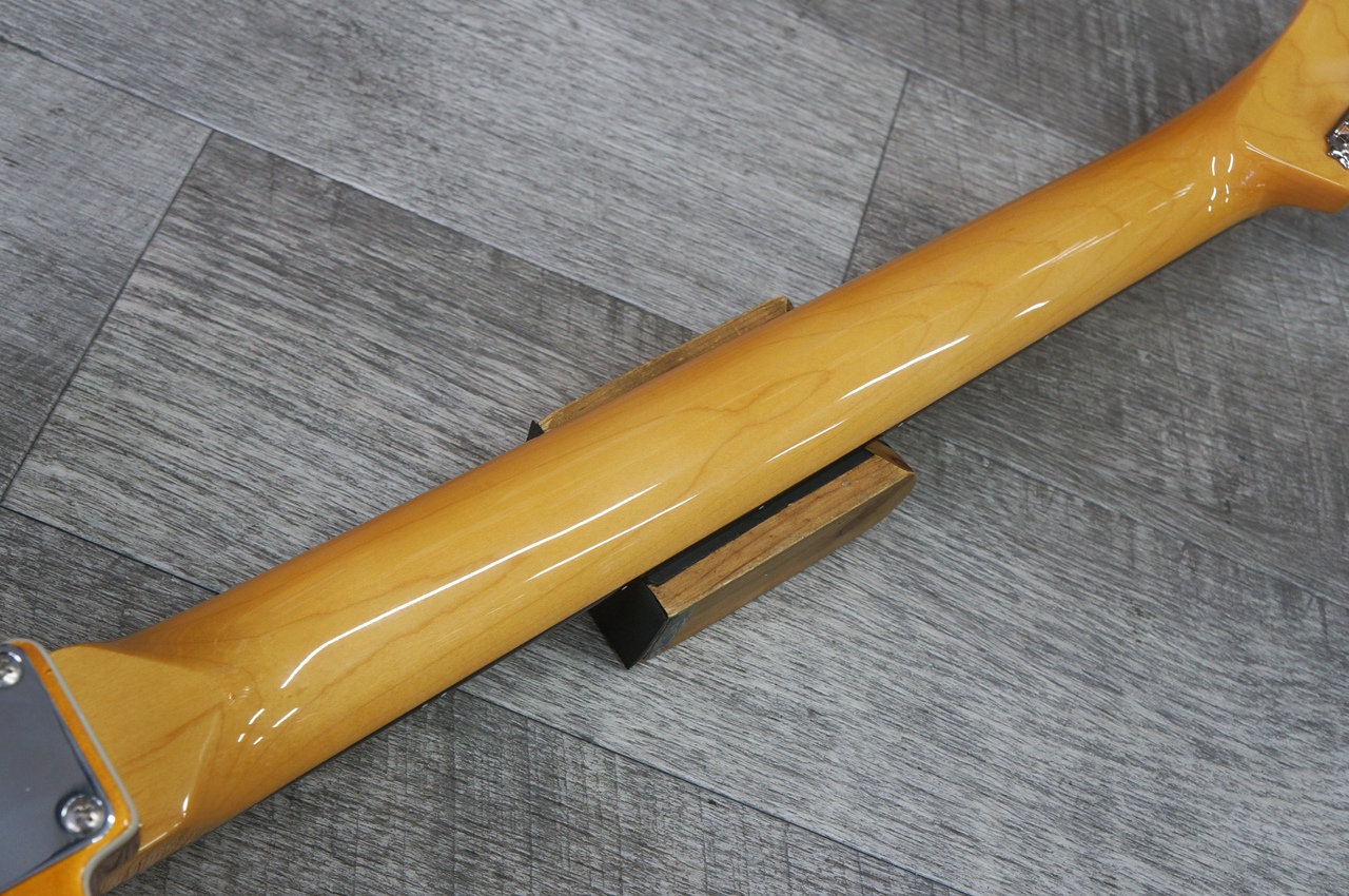 メイプルネック、ローズウッド指板、牛骨ナットを使用。