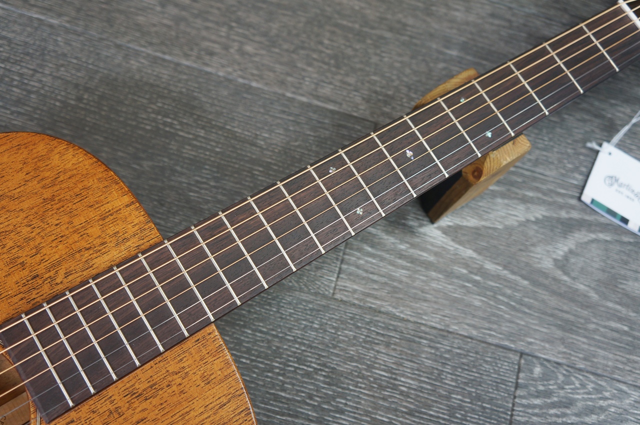 ボディサイズは小ぶりな00(ダブルオゥ)で、指弾き、フィンガースタイルはもちろん、軽やかなフラットピッキングなども似合うアコースティックギターです。