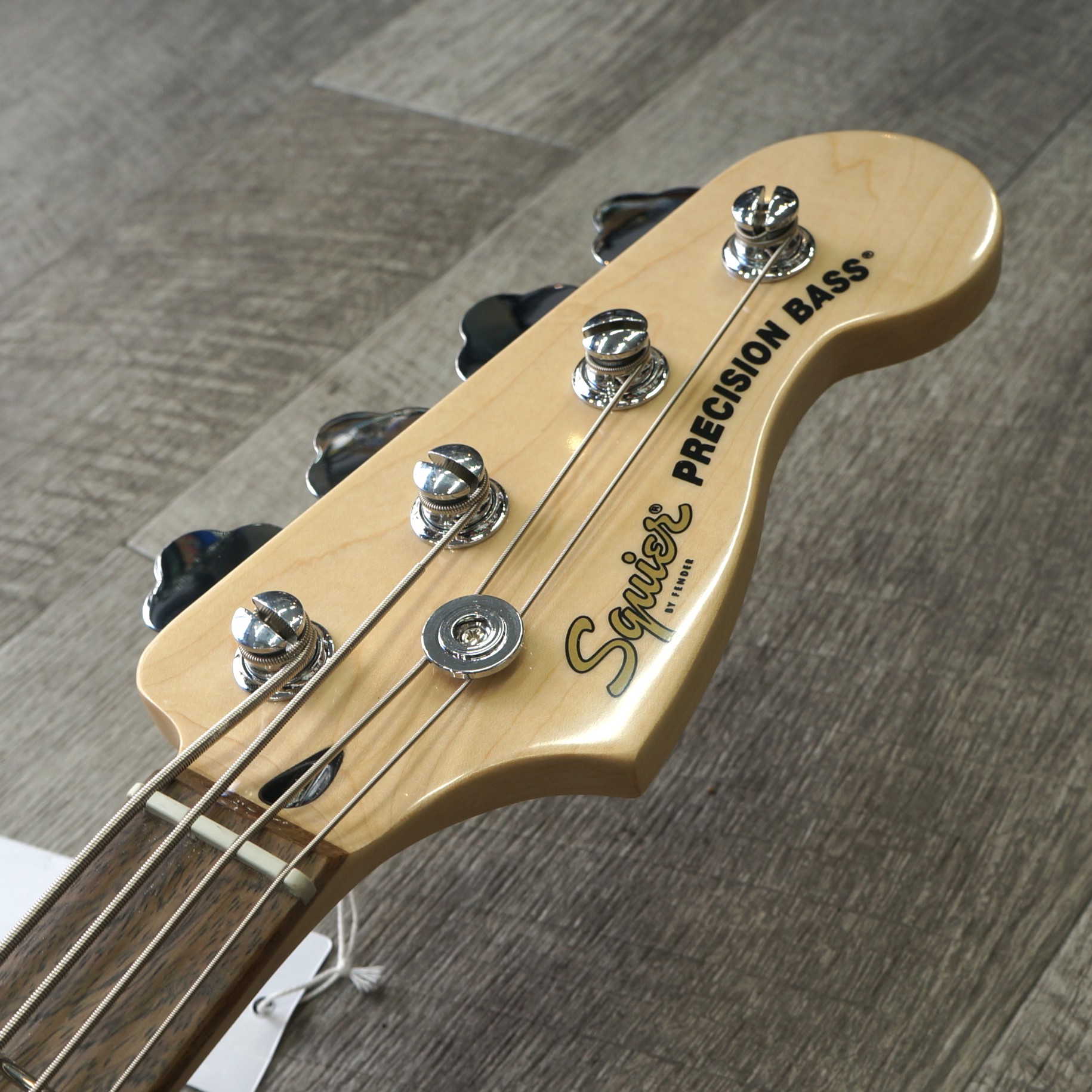 このPrecision Bassは、薄くて軽量なボディ、スムーズで正確なチューニングを可能にするヴィンテージスタイルオープンギアチューニングマシンなど、プレイヤーフレンドリーな洗練された機能を備えています。また、Squier Split Single-Coil Jazz Bassピックアップを搭載し、多彩な音色であらゆるステージであらゆるプレイヤーに寄り添うことができるモデルです。スリム "C" シェイプネックプロファイルを採用しています。