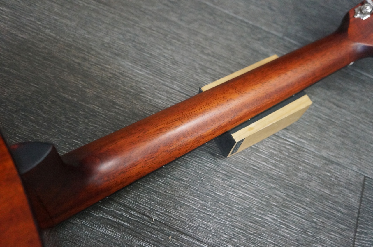 トップ板に単板シトカスプルース、サイドとバックに単板サペリを使用。
