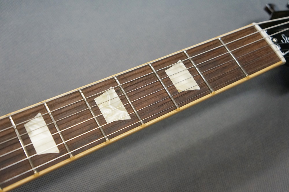 弦の交換がスムーズなロッキングペグや、トーンプロス製ブリッジとテールピース、そしてシールドの抜け落ちを防ぐノイトリック製のロッキングプラグを搭載したモダンなレスポールスタンダードです。