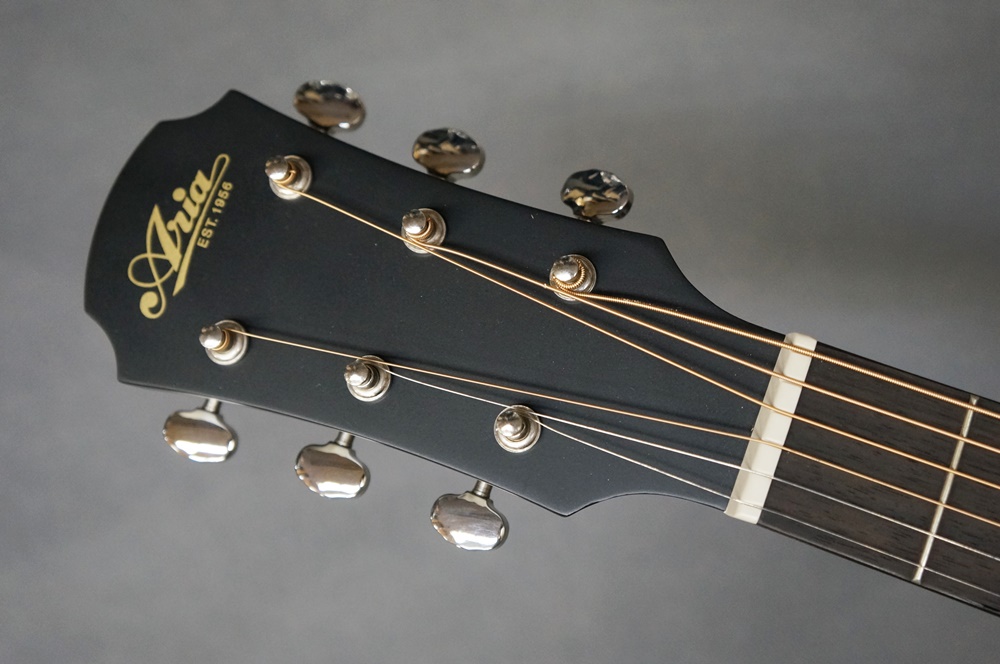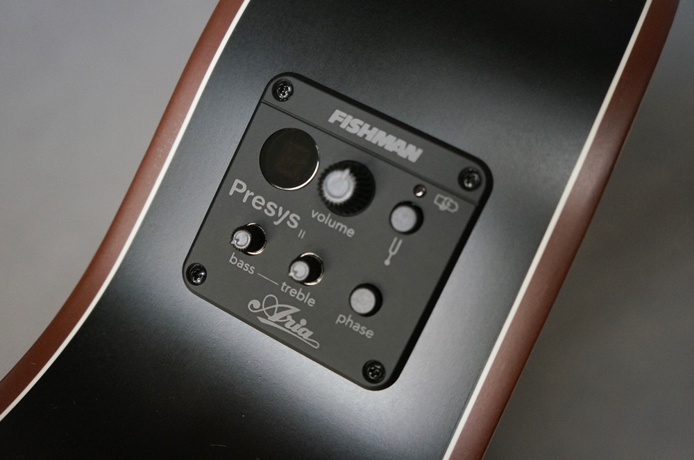 トップにスプルース材を使用し、サイドとバックにサペリを使用したアリアのレフティモデル。