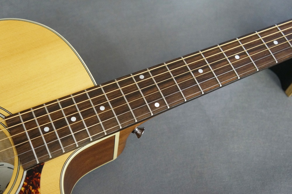 ピックアップはGuildオリジナルのAP-1を搭載し、VolumeとToneはサウンドホールの側で操作できるようになっております。