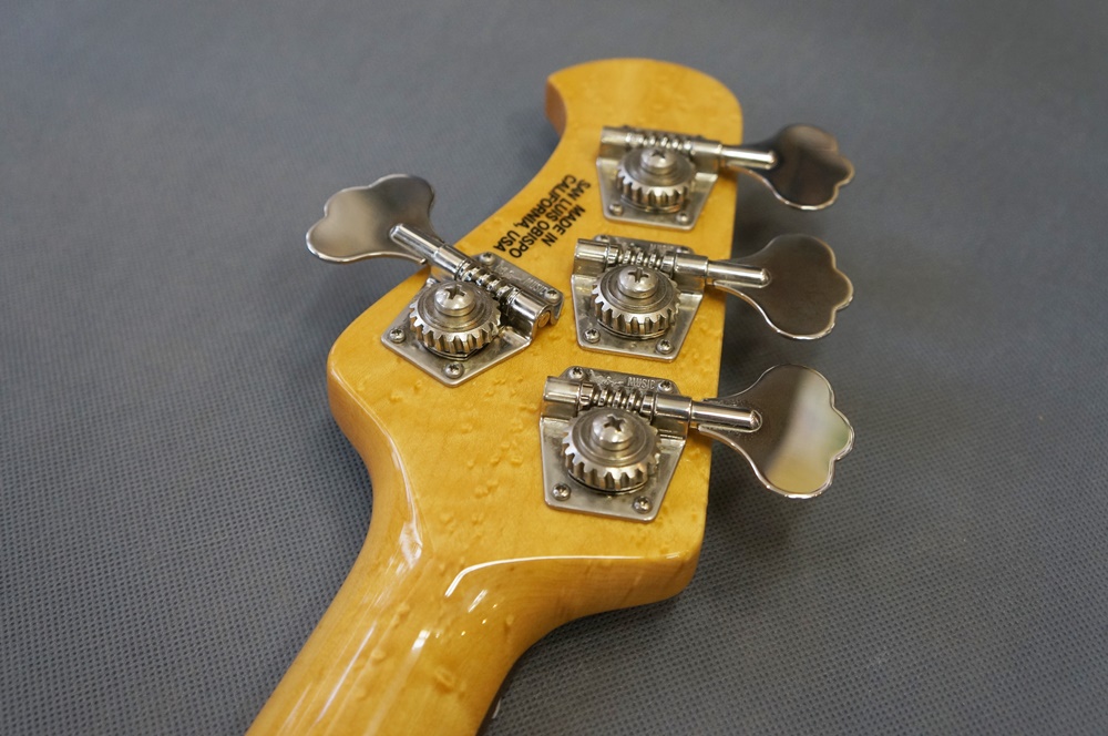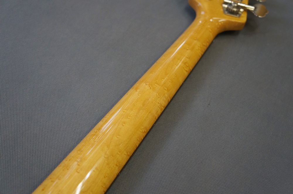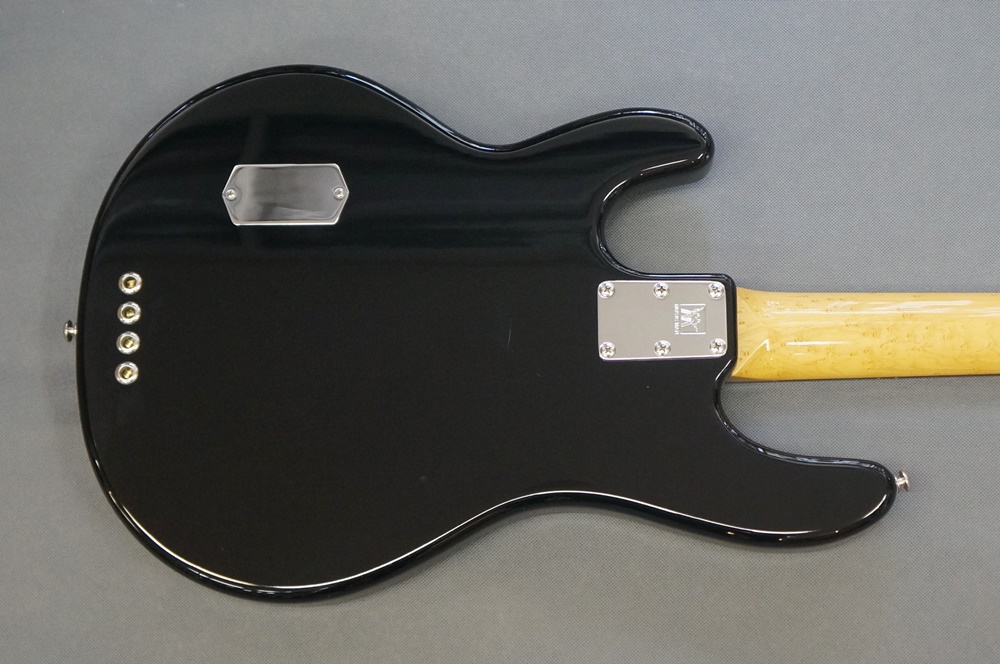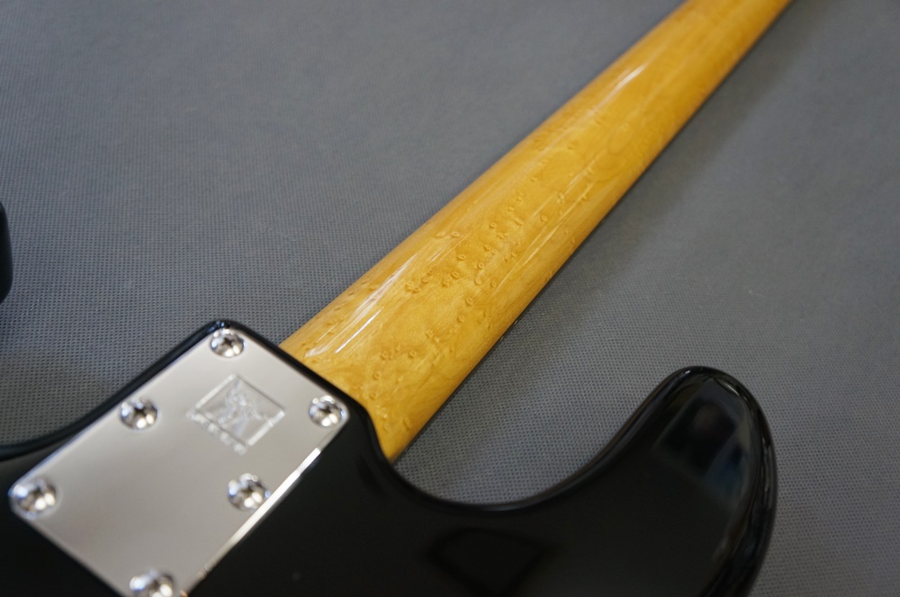 美しく高級感あるバーズアイメイプルネックにシックなブラックボディ。そしてクラシカルな2バンドイコライザー仕様のスティングレイベース。