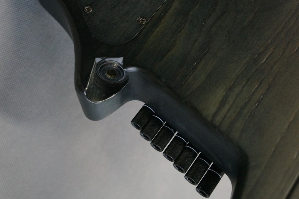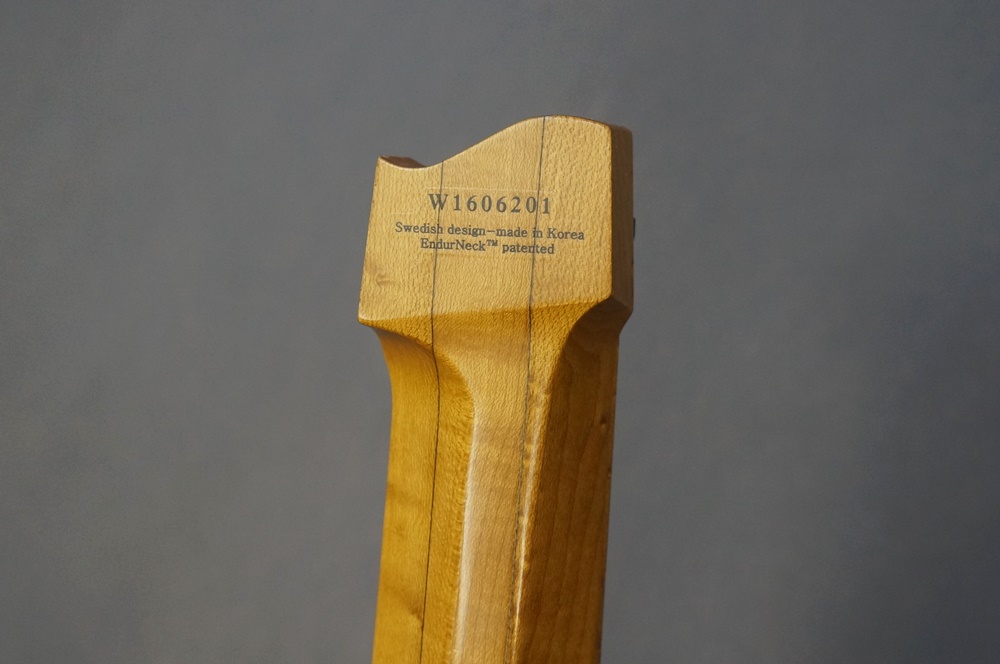 人間工学に基づいた設計で製作され、その独特なボディシェイプや、カーボンによる補強が施された台形のメイプルネックなどが特徴です。