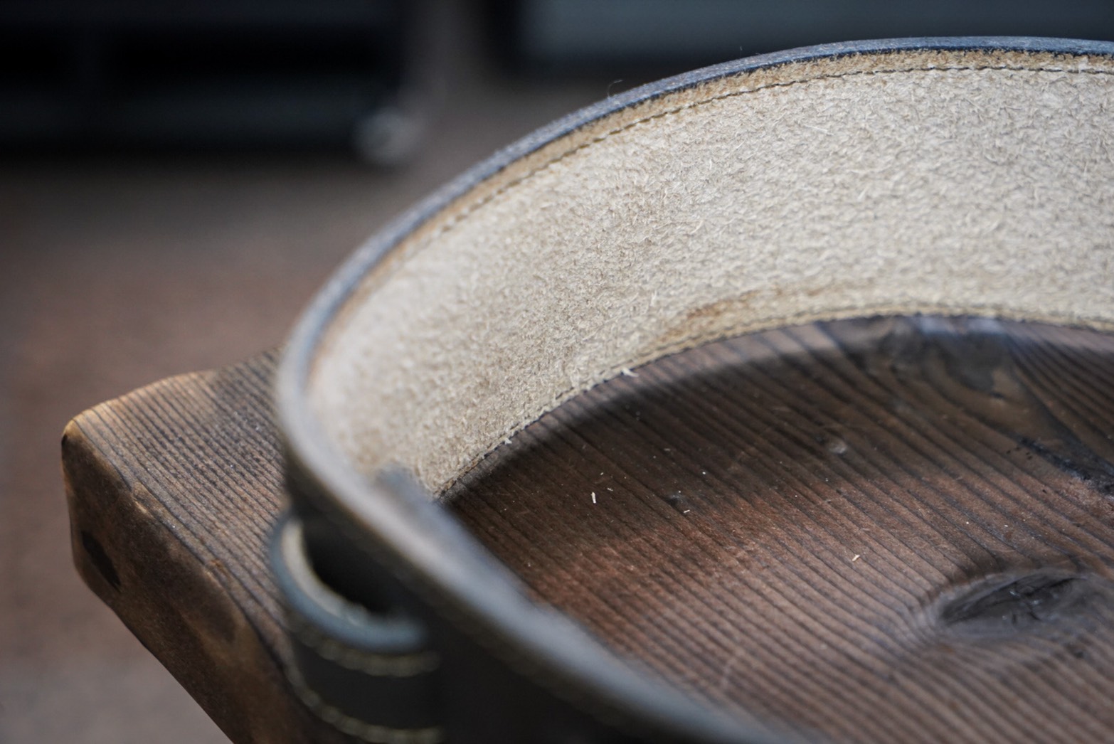 素材の革には厚口のサドルレザーを使用。サドルレザーとは栃木レザー社製のヌメ革です。
