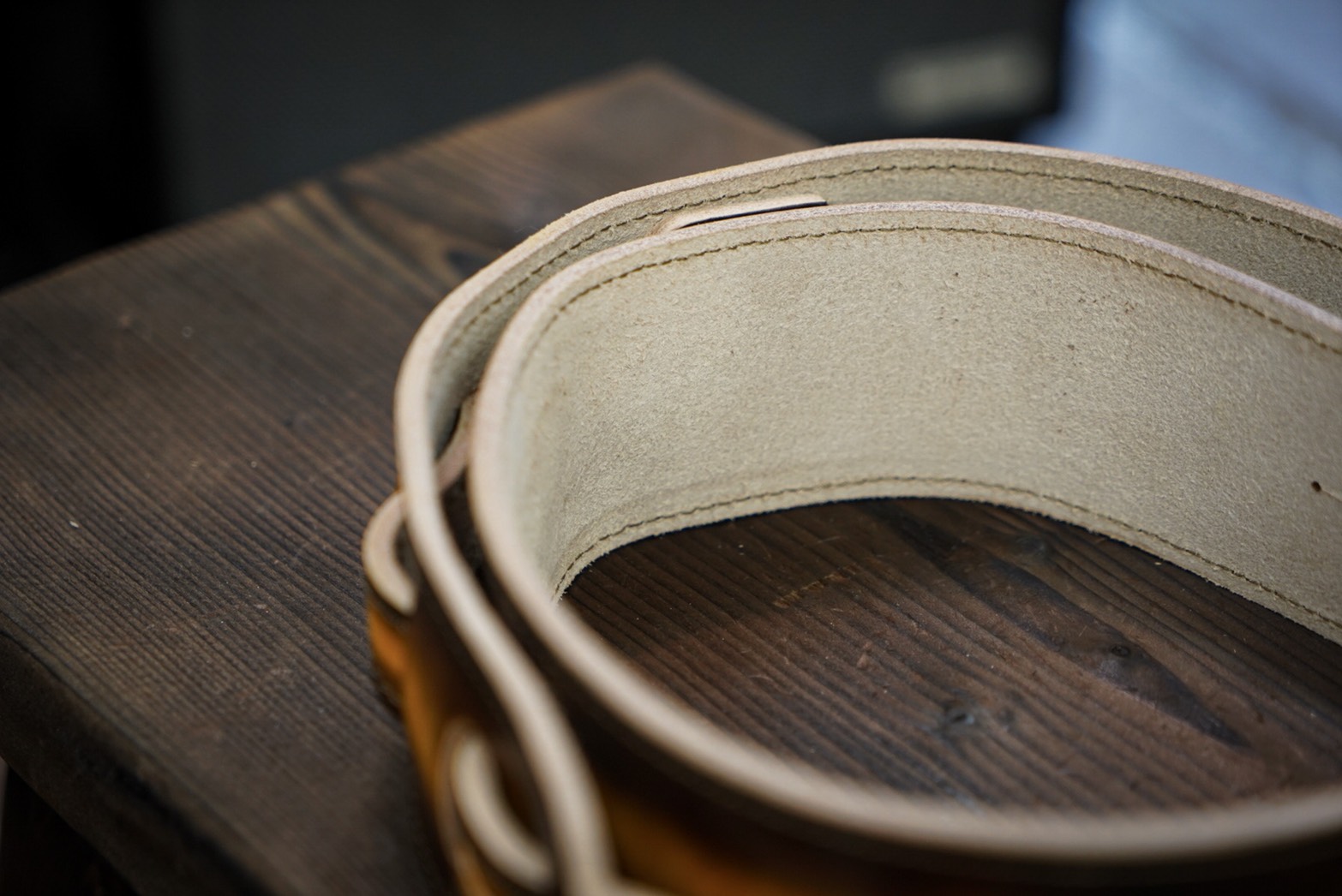 通常より長い2か月という時間をかけて鞣されたレザー。厚口でしっかりした腰としなやかさ、耐久性が持ち味で、馬の鞍に使っても大丈夫なほどの堅牢さを誇ります。