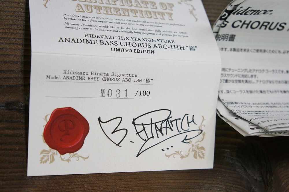 ナンバー入りの特別認定書および、本体裏蓋に日向秀和本人の直筆サイン入りです。